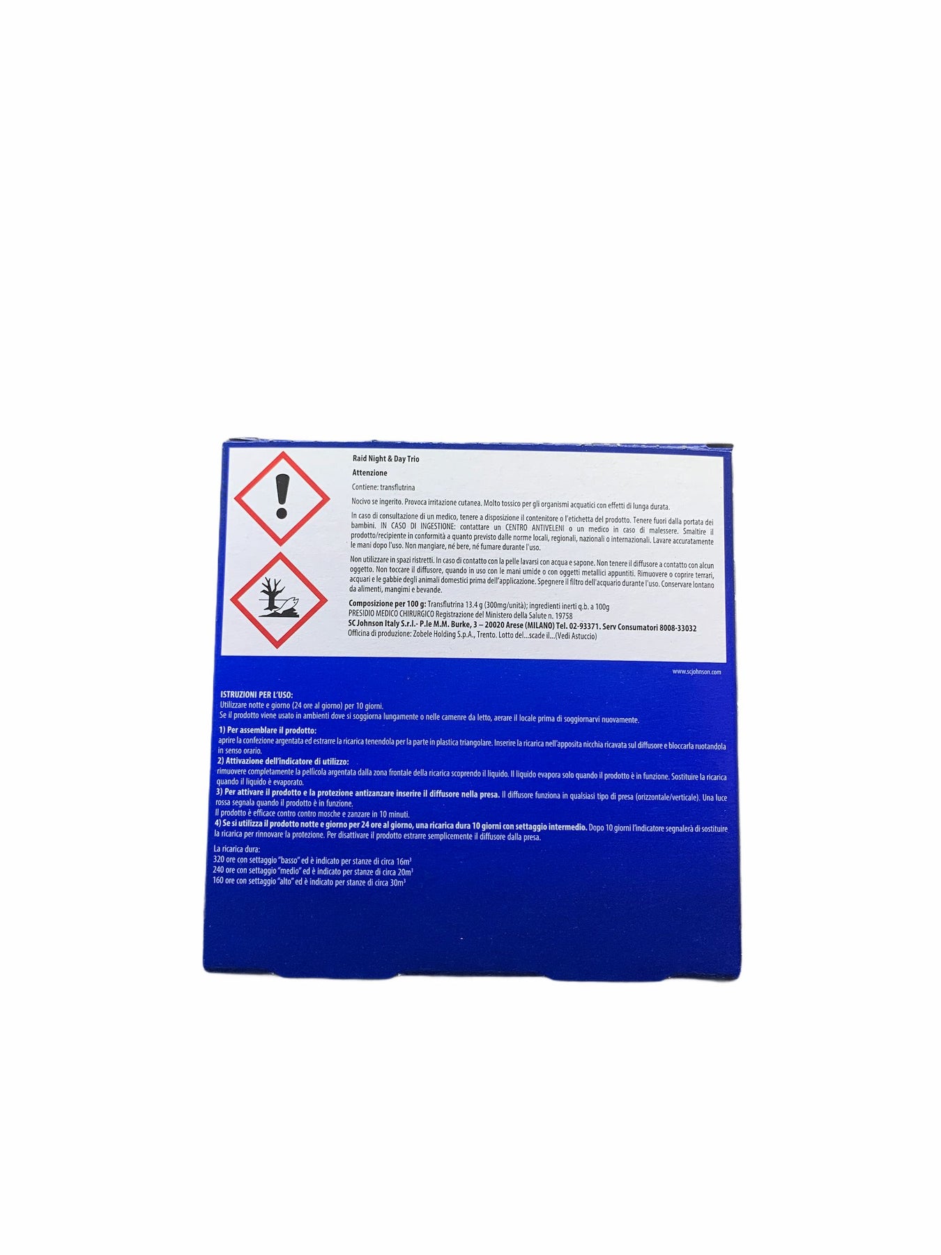 Con il kit Raid Night&Day Trio, potrai goderti una protezione continua per un periodo prolungato. Le due ricariche offrono una durata combinata che ti permette di godere di tranquillità senza preoccuparti di sostituire frequentemente le ricariche.